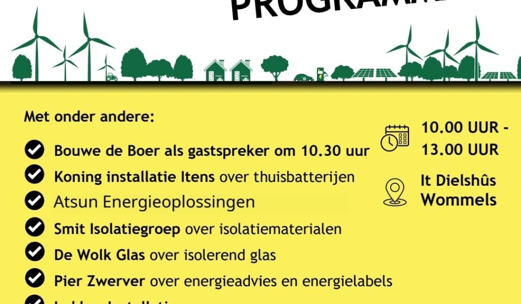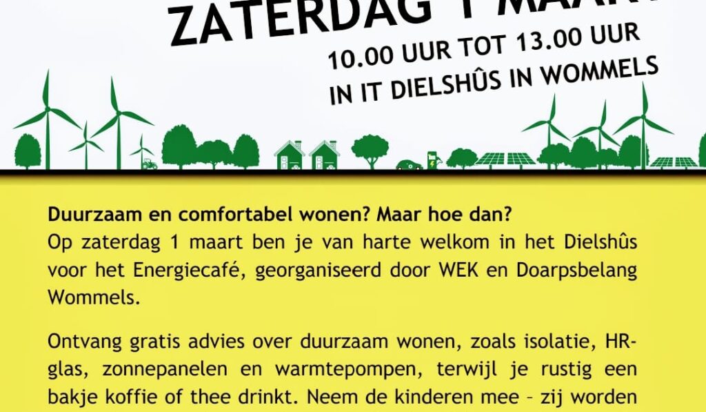 op 1 maart in het Dielshus in Wommels Programma Energiecafe 1 maart. Vervang deze tekst