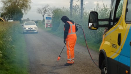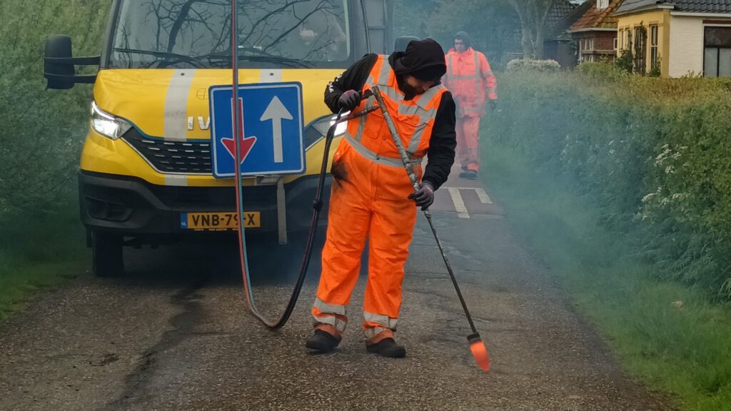 Ons vermoeden is dat dit lapwerk nu gebeurd, zodat er tijdens de aankomende pinkstermaandag geen van de duizenden elfsteden-fietsers door de scheuren of gaten vallen. Hoop dat het mooi weer wordt!